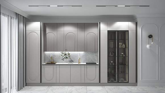 Кухня Арко Неоклассика в серой палитре — это гимн архитектурной гармонии, тишине и глубине. Каждый ее элемент дышит историей, но звучит современно. Это не просто мебель — это интерьерная доминанта с характером: сдержанным, но выразительным.