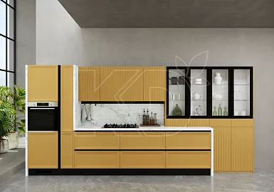 - Фасад. Это передняя часть гарнитура, от которой зависит долговечность и внешний вид гарнитура. Кухни - влажное и потенциально загрязненное помещение. Недорогие изделия обычно изготавливаются из МДФ, ДСП, пластикового МДФ или МДФ, окрашенного пленкой ПВХ. Модели высокого класса изготавливаются из массива дерева или шпона.