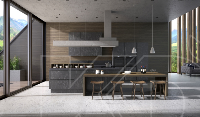 Эксперты настоятельно рекомендуют использовать кухонный гарнитур черного цвета в студиях, которые объединены с гостевыми помещениями, коридорами либо балконами. Это обусловлено тем, что в таком пространстве кухонная мебель обладает максимальным эффектом и при этом визуально привлекает к себе внимание окружающих. Необходимо четко понимать, что темные фасады акцентируют внимание на четких формах и красиво смотрятся со светлой отделкой, деталями из позолоты или под мрамор. Рассматриваемый кухонный гарнитур может иметь любой тип поверхности. К наиболее распространенным принято относить: