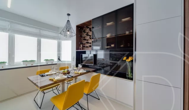 При желании можно оформить помещение высококачественным черным обеденным столом либо исключительно стульями соответствующей палитры. В качестве традиционного решения считается столовая зона, оснащенная столом и табуретами, которые изготовлены в одной цветовой палитре.