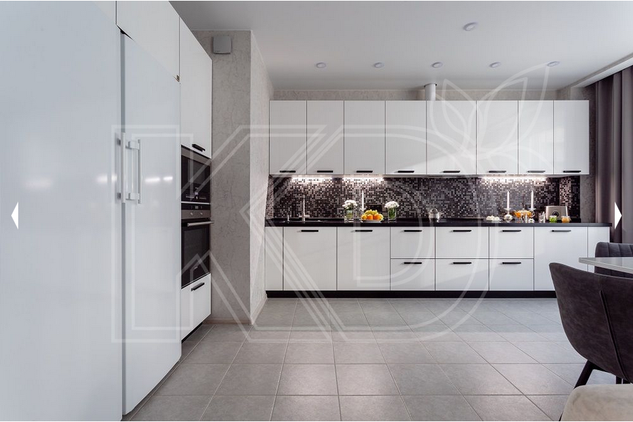 Вы можете подобрать контрастные обои, занавески, кухонный фартук или просто заказать гарнитур с двухцветными фасадами: в каталоге кухонь бренда «Кухонный Двор» представлены и такие образцы.