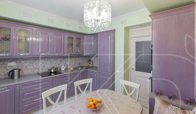 В каком стиле можно будет оформить кухне в фиолетовых тонах?