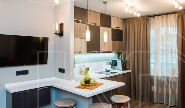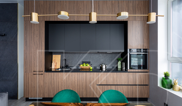 В маленьких помещениях допускается точечное использование темных элементов. Это может быть столешница с подсветкой, открытая полка или декоративный элемент.