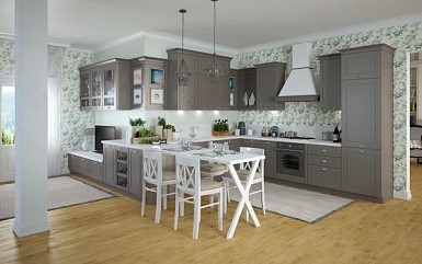 На первом этапе необходимо выбрать цвет стен, потолка и пола. Понять, какими будут фасады гарнитура – глянцевыми или матовыми, плоскими или филенчатыми.