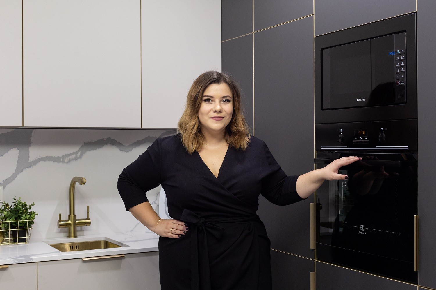 Обворожительно! Вера искала кухню, которая идеально бы подходила стилю «арт-деко». И «Ханна Стил» здесь в топе всех чартов! Ее фасады «Extra Touch Matt» имеют уникальную «бархатистую» текстуру, а также выразительные контрастные кромки. «Золотое» обрамление потрясающе смотрится как с белыми, так и чёрными поверхностями! А окончательную завершенность образу модели придают ручки, мойка и смеситель. Их цвет перекликается с цветом кромок, делая внешность «Ханны» ещё более презентабельной!