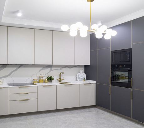 Ищете кухню в любимом стиле? Мы предлагаем черно-белую кухню на заказ, которая создает стиль! Перед Вами «Ханна Стил» – модель, с которой дизайн творите лично Вы! Отныне Вам подвластно намного большее, чем выбор цветов и фактур. Комбинируйте закрытые пространства с открытыми зонами. Выбирайте сами, какие ящики снабдить ручками, а какие будут открываться лёгким касанием. Используйте уникальные бархатистые фасады из MDF, на которых не остается следов от прикосновений. Подчёркивайте их красоту изысканными кромками золотого, медного или алюминиевого оттенков. Да, теперь именно Вы выбираете, какой будет кромка Вашей кухни! Три эксклюзивных цвета кромирования и 7 вариантов расцветки фасадов дают Вам 21 цветофактурную комбинацию!