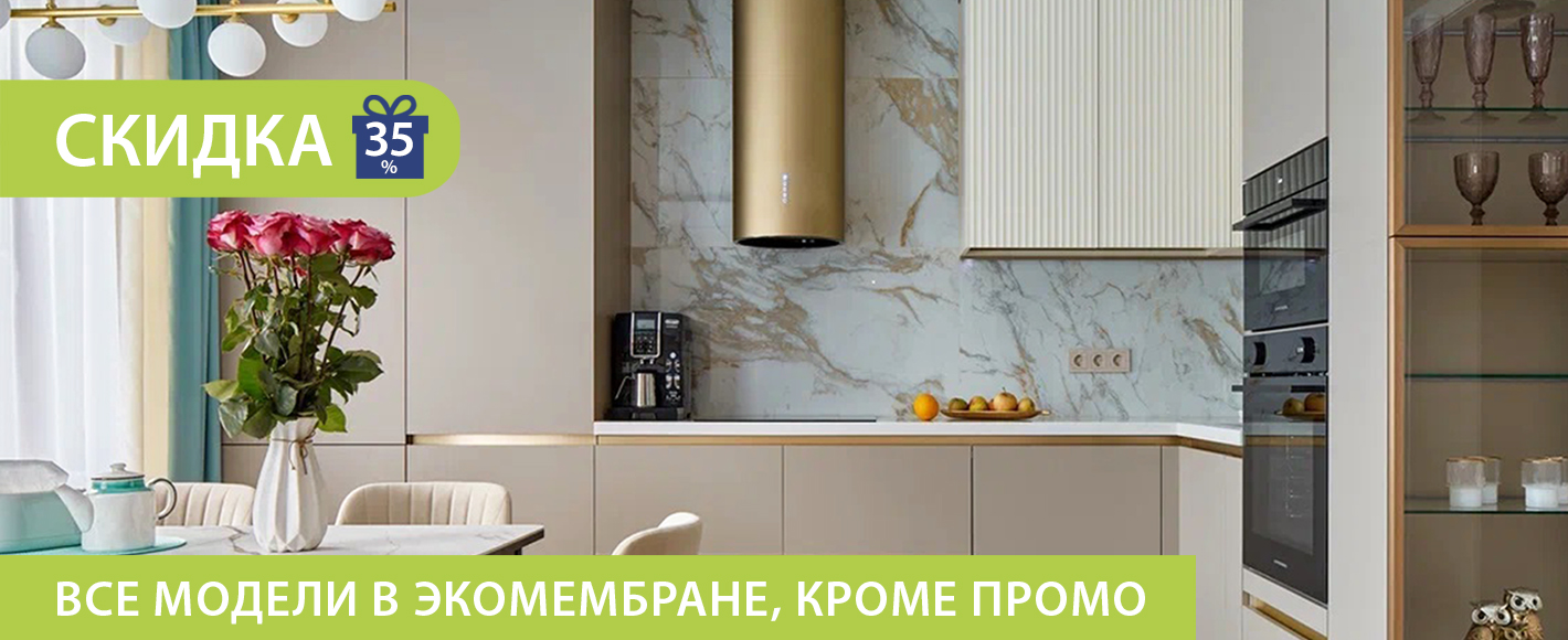 В канун Нового года в «Кухонном Дворе» для вас особенное предложение! Только сейчас вы можете приобрести любую модель кухни с фасадами из экомембраны с невероятной скидкой! Исключение из акции составляют модели линейки ПРОМО.